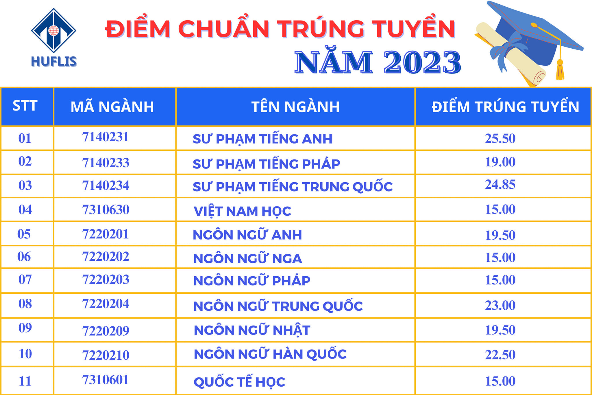 Trường Đại học Ngoại ngữ, Đại học Huế thông báo điểm trúng tuyển đại học năm 2023 như sau: