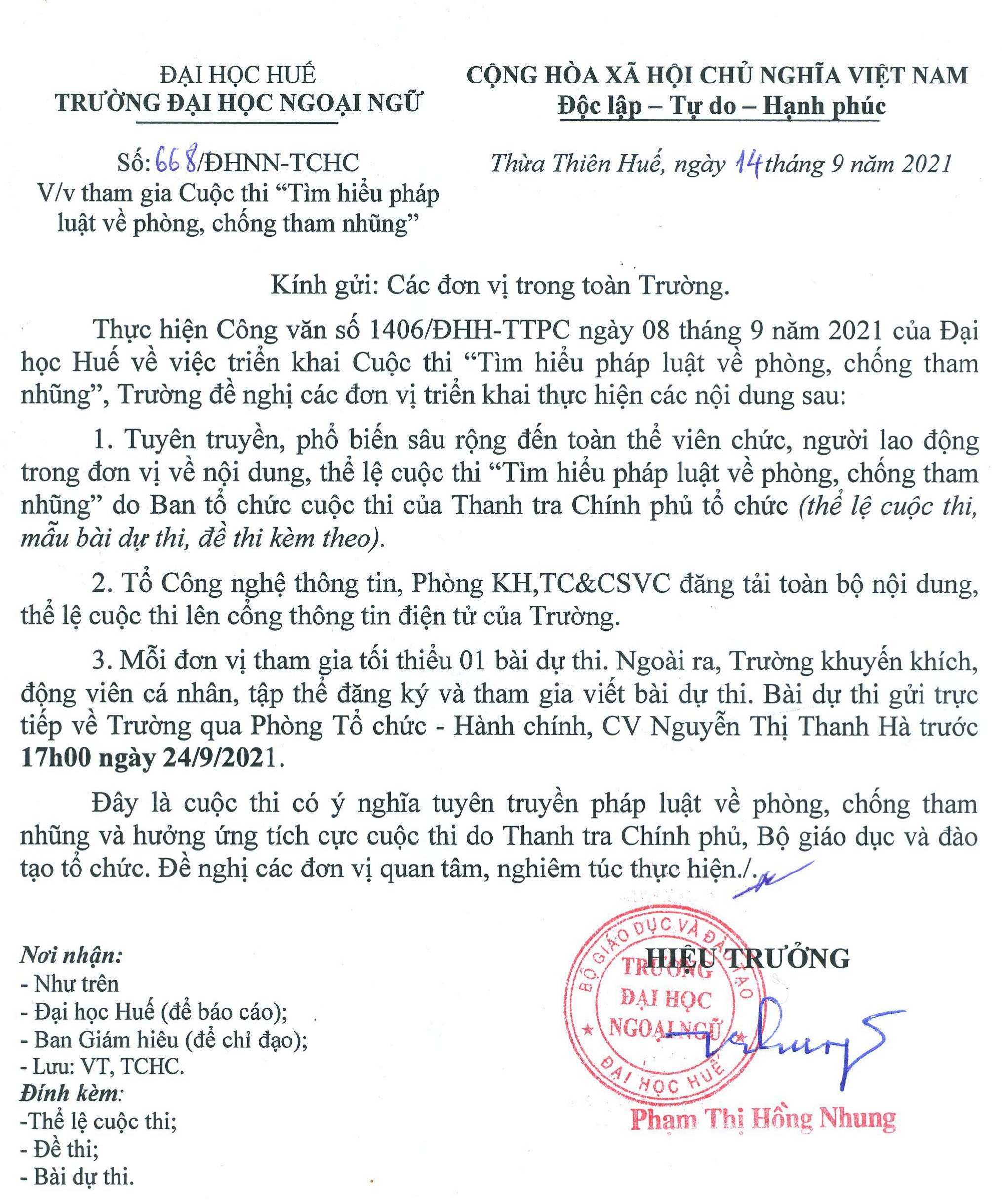 Thông báo triển khai Cuộc thi “Tìm hiểu pháp luật về phòng, chống tham nhũng” 14-09-2021