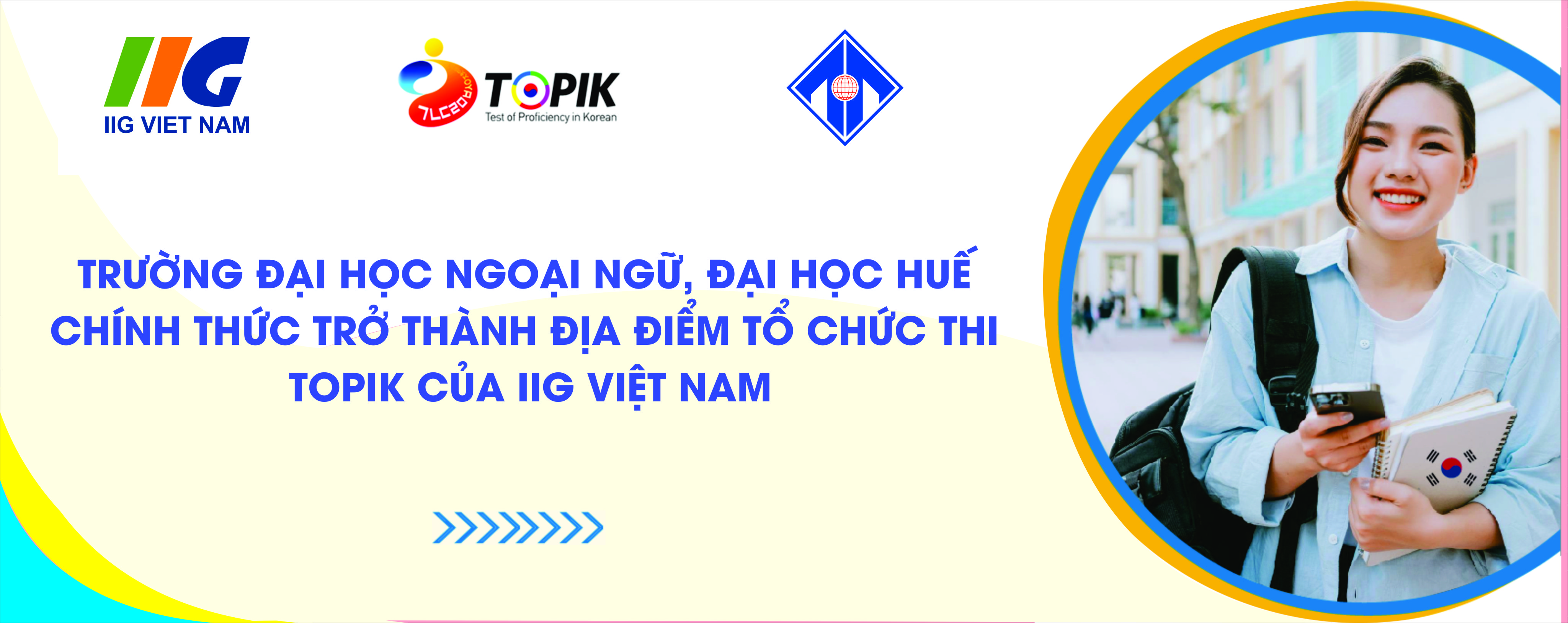 Trường Đại học Ngoại ngữ, Đại học Huế đã hợp tác với Tổ chức Giáo dục IIG Việt Nam chính thức trở thành một trong những địa điểm được cấp phép tổ chức thi TOPIK tại Việt Nam từ kỳ thi TOPIK 87 (09/04/2023)