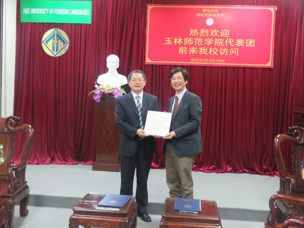 Tại buổi tiếp TS. Bảo Khâm, Bí thư Đảng ủy, Hiệu trưởng Nhà trường chúc mừng và chào đón đoàn, hai bên đã cùng trao đổi trong lĩnh vực giáo dục và đào tạo, như trao đổi sinh viên theo hình thức chuyển đổi tín chỉ, trao đổi giảng viên, giao lưu văn hóa…Lãnh đạo của hai đơn vị đã đi đến thống nhất là: Cùng xây dựng các chương trình đào tạo liên kết phù hợp với quy định hiện hành của Việt Nam và Trung Quốc. Tích cực quảng bá thương hiệu của hai đơn vị cho sinh viên của mình. Hai bên ký bản ghi nhớ hợp tác về giáo dục và đào tạo làm cơ sở cho việc triển khai các hoạt động hợp tác sau này.