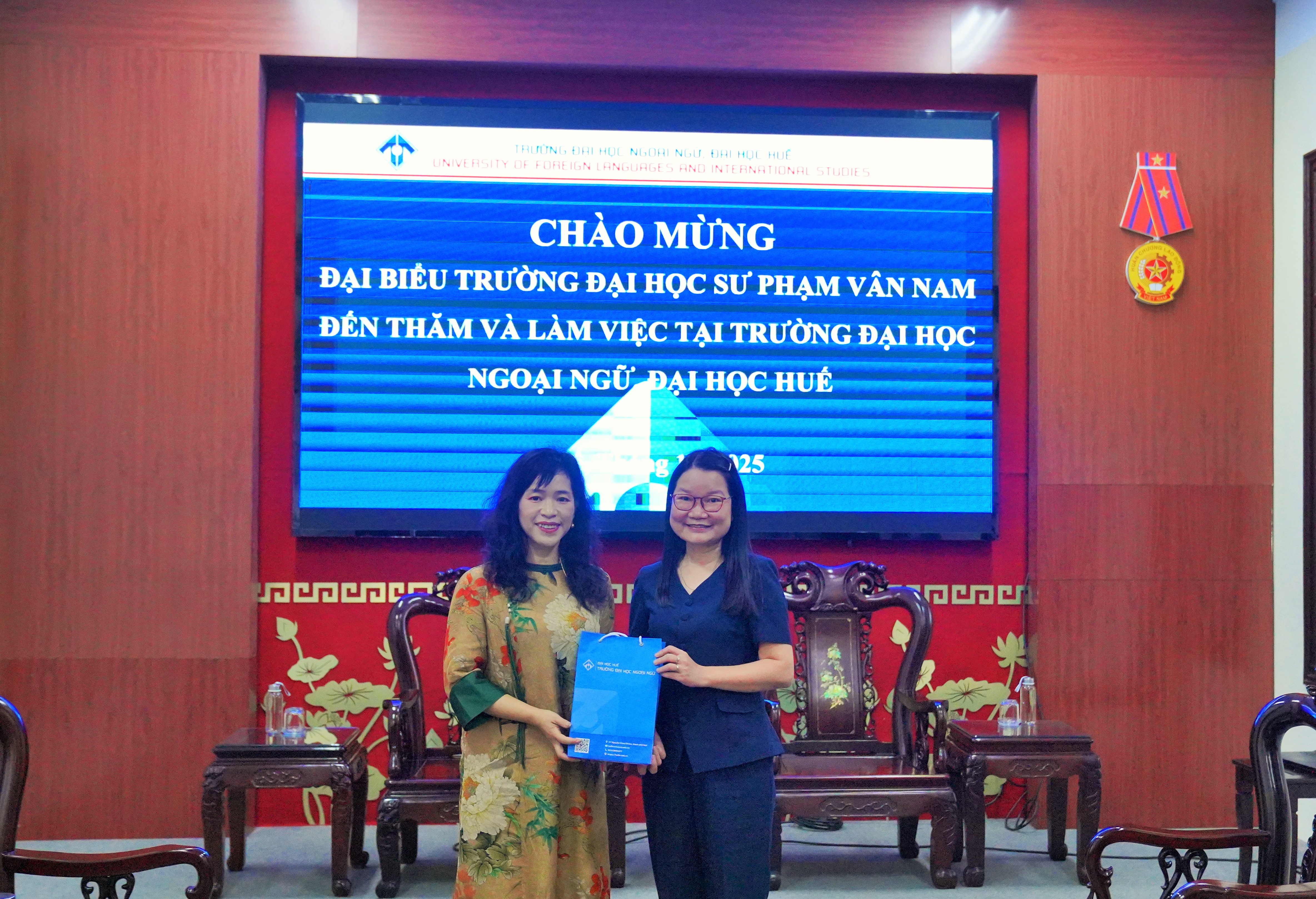 HUFLIS- Sáng ngày 05/11/2025, Trường Đại học Ngoại ngữ, Đại học Huế đã tổ chức đón tiếp GS. Dương Kiện, Phó Viện trưởng Viện Hoa văn, Trường Đại học Sư phạm Vân Nam, đến thăm và trao đổi về khả năng triển khai các hoạt động hợp tác giữa hai bên. PGS.TS. Nguyễn Hồ Hoàng Thủy, Phó Hiệu trưởng Nhà trường cùng đại diện lãnh đạo các đơn vị liên quan đã tham gia đón tiếp đoàn.