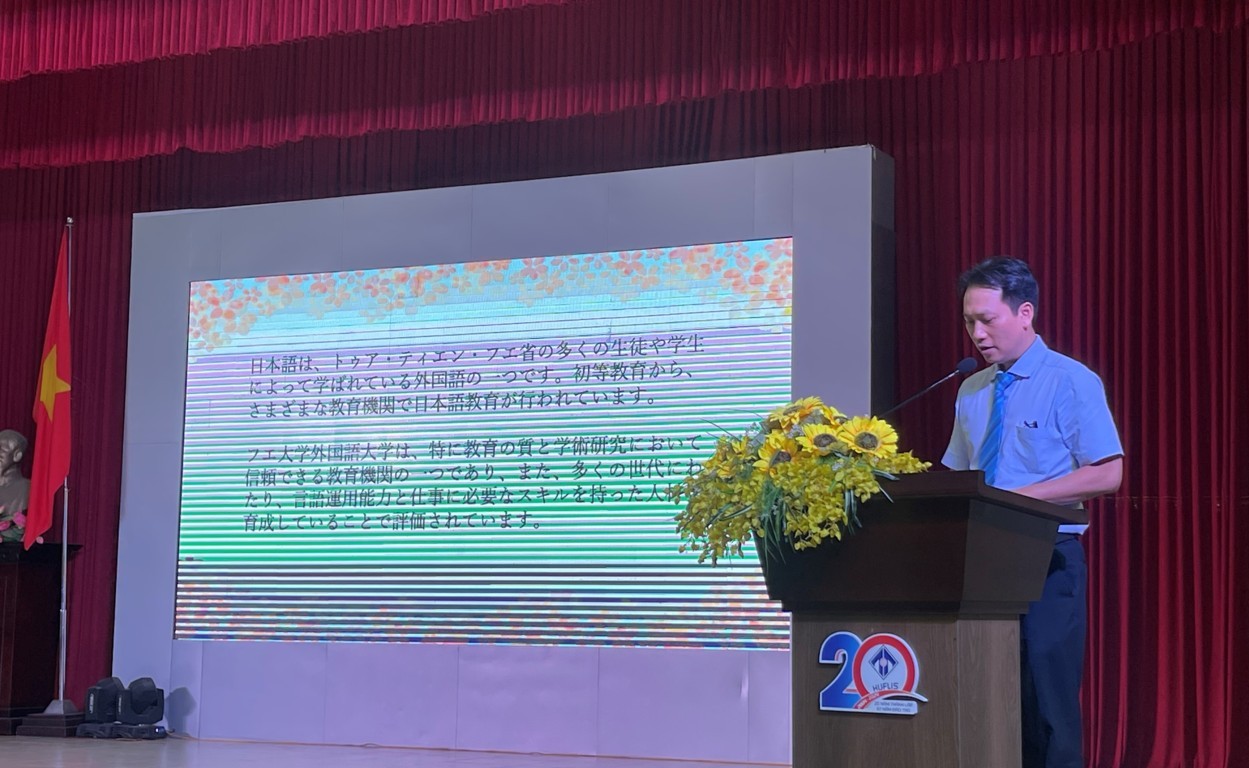 Vào ngày 12/10/2024, với mục tiêu giúp sinh viên tìm hiểu về mối quan hệ hữu nghị giữa Việt Nam và Nhật Bản, Trường Đại học Ngoại ngữ, Đại học Huế phối hợp với Tổng lãnh sự quán Nhật Bản tại Đà Nẵng đã tổ chức Buổi nói chuyện “Giao lưu với các tiền bối tìm hiểu về mối quan hệ hữu nghị Việt Nam-Nhật Bản”.
