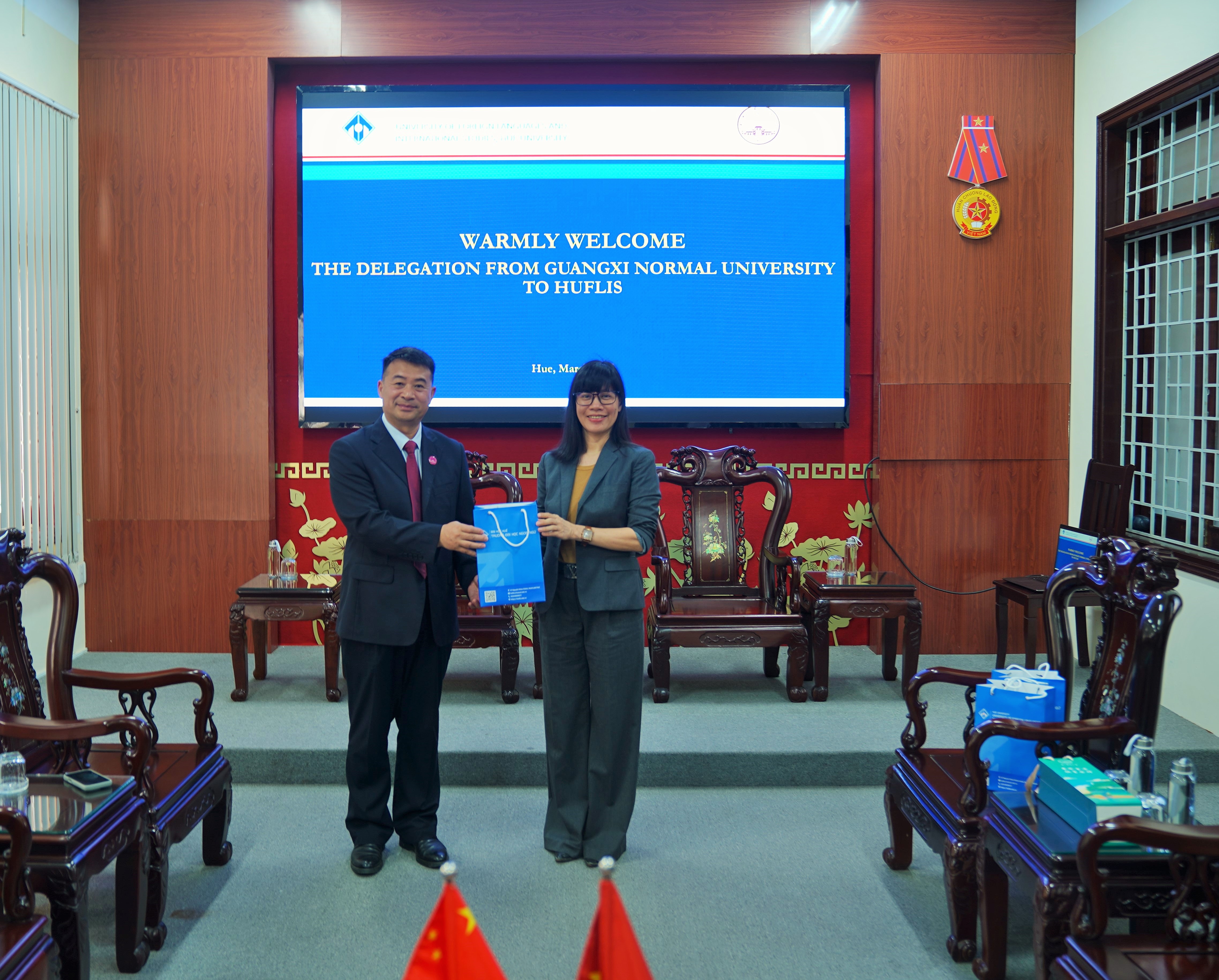 HUFLIS- Chiều ngày 24/3/2025, Lãnh đạo Trường Đại học Ngoại ngữ đã có buổi làm việc với Lãnh đạo trường Đại học Sư phạm Quảng Tây, Trung Quốc - đối tác truyền thống của Nhà Trường và có nhiều hoạt động hợp tác về đào tạo, trao đổi sinh viên.