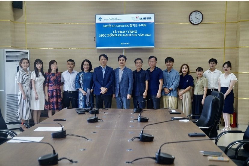 Phát biểu tại buổi lễ trao học bổng, TS. Nguyễn Văn Huy đại diện Ban Giám hiệu Nhà trường đã gửi lời cảm ơn sâu sắc đến Quỹ giao lưu quốc tế Hàn Quốc KF và Tập đoàn Samsung Electronics đã luôn đồng hành cùng với Nhà trường trong hoạt động trao học bổng cho sinh viên, đào tạo ngôn ngữ tiếng Hàn và đã hỗ trợ liên tục cho Nhà trường về mọi mặt trong những năm qua.