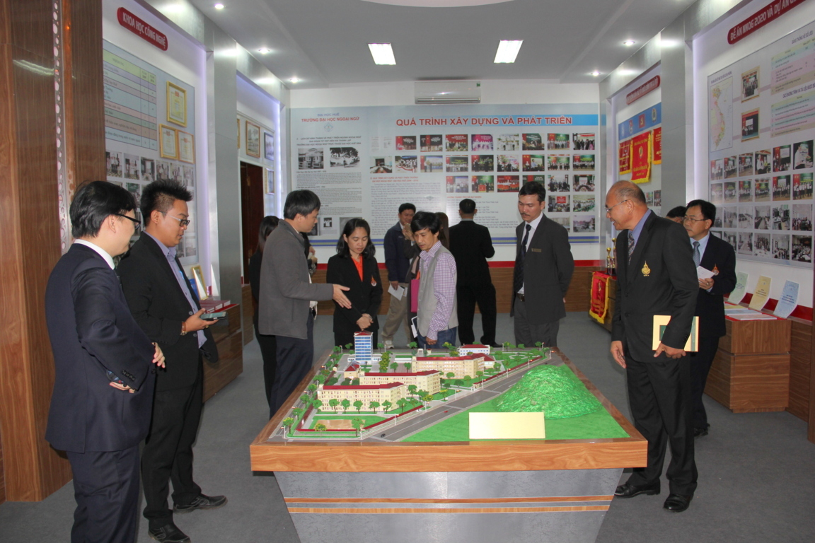 Sáng ngày (12/1), đoàn đại biểu của Trường Đại học Công nghệ Rajamangala Isan, phân hiệu Sakhon Nakhon Thái Lan, gồm 14 thành viên do PGS. Suthian Namvong - Trợ lí Hiệu trưởng làm trưởng đoàn, đã đến thăm và làm việc với Trường Đại học Ngoại ngữ, Đại học Huế.