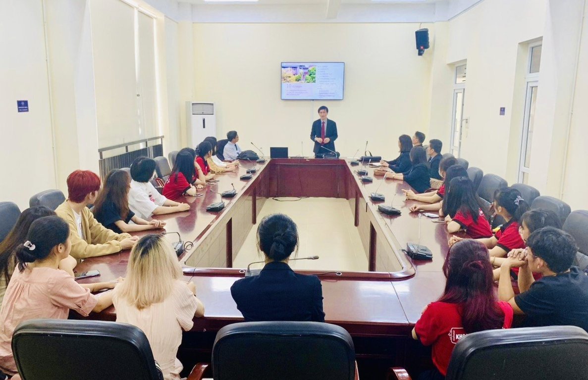 Đại diện lãnh đạo Trường NTNU nói chuyện với giáo viên và sinh viên Khoa tiếng Trung và Quốc tế học