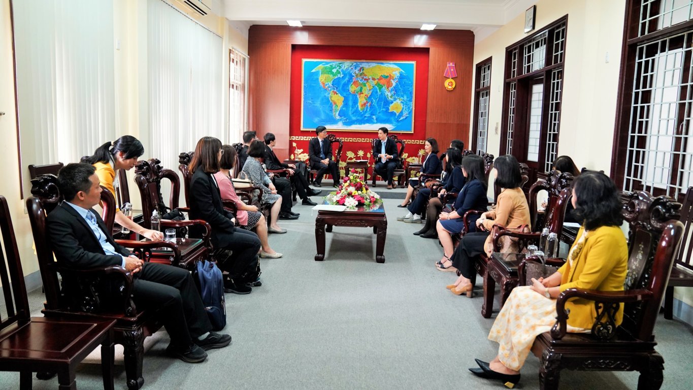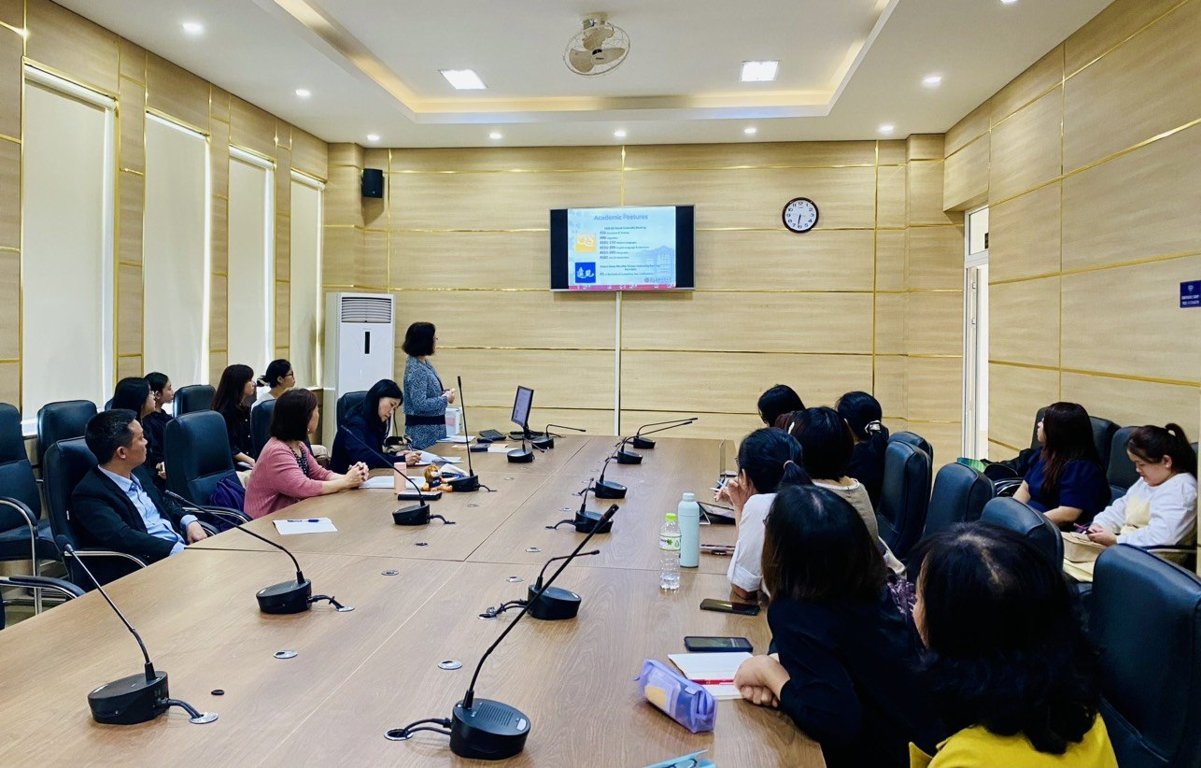 Tham dự tiếp đoàn, phía HUFLIS có TS. Nguyễn Văn Huy, Phó Hiệu trưởng, TS. Nguyễn Vũ Quỳnh Như, Trưởng Phòng KH,CN&HTQT, cùng đại diện lãnh đạo các Khoa Tiếng Anh, Tiếng Trung, Quốc tế học, Việt Nam học và Tiếng Anh chuyên ngành.