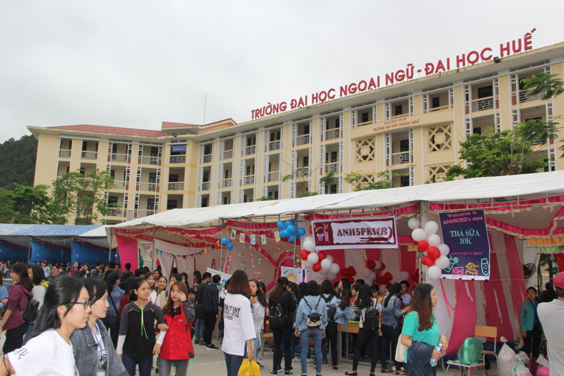 Thiết thực chào mừng kỷ niệm 86 năm thành lập Đoàn TNCS Hồ Chí Minh (26/3/1931 – 26/3/2017) và 42 năm ngày giải phóng quê hương Thừa Thiên Huế ngày 26-3-2017, Đoàn Trường Đại học Ngoại ngữ tổ chức Hội chợ với chủ đề “Đoàn viên sinh viên Trường Đại học Ngoại ngữ, Đại học Huế năng động, sáng tạo, hội nhập, xung kích vì cuộc sống cộng đồng”.