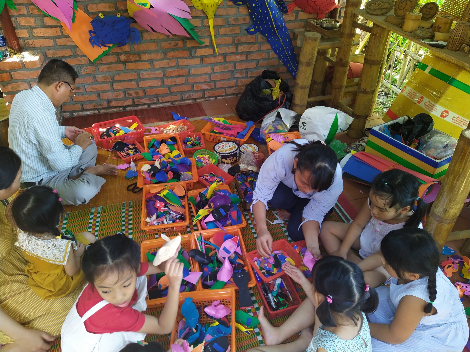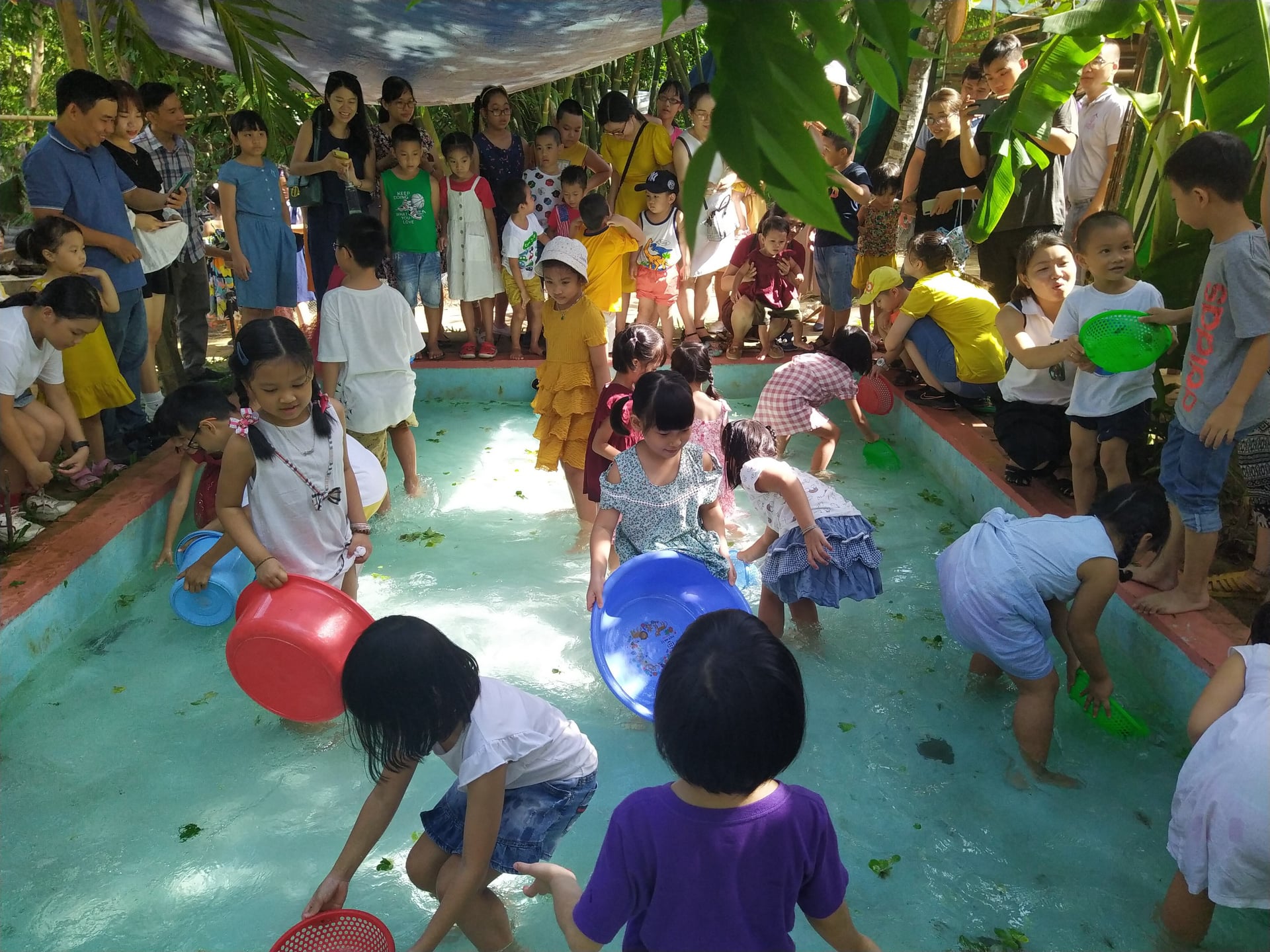 Chương trình vui Tết trung thu năm 2020 với chủ đề chính “Trải nghiệm” để các cháu được hòa mình vào không khí vui tươi phấn khởi khi được tham quan nhà Phú Ông, khu tập trung các nghề truyền thống, nhà Huế, nhà chị Dậu, khu vui chơi, vườn rau, bếp củi, trại gà Chín Cựa, sân khấu biểu diễn Múa Rối Nước, bể bắt cá…Đặc biệt các cháu đã được trực tiếp trải nghiệm làm ra các sản phẩm và được mang về như làm hoa giấy, làm gốm nặn tay, nặn đất sét chú gà con với vỏ trứng và rơm, làm thú xốp, làm trầm hương, làm bánh Su kem.